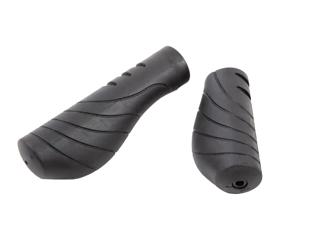 Die Mounty Wing-Grips Screw 2 SF sind ergonomische Fahrradgriffe im flügelförmigen Design, die hohen Komfort bei längeren Fahrten bieten. Sie bestehen aus einer angenehm griffigen Kraton-Gummi-Mischung und verfügen über eine verdrehsichere Schraubklemmung aus Kunststoff, die eine sichere Befestigung am Lenker gewährleistet. Die Griffe sind in kurzer und langer Ausführung erhältlich und eignen sich für Fahrräder mit Griffschaltungen.