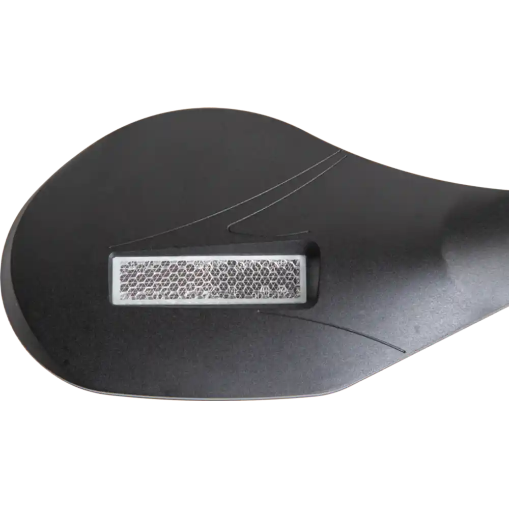 Der Mounty Rückspiegel Tour Reflect in Schwarz ist ein robuster Fahrradspiegel, der speziell für E-Bikes, Cruiser und MTB entwickelt wurde. Der schlagstarke, umweltfreundliche Kunststoffrahmen passt für Lenker mit einem Durchmesser von 21–26 mm. Der Spiegel ist vielfach einstellbar, sodass der Sichtwinkel individuell angepasst werden kann. Auf der Rückseite ist ein Reflektor integriert, der die Sichtbarkeit und Sicherheit im Straßenverkehr erhöht. Der Spiegel ist für die Montage auf der linken Seite vorgesehen.