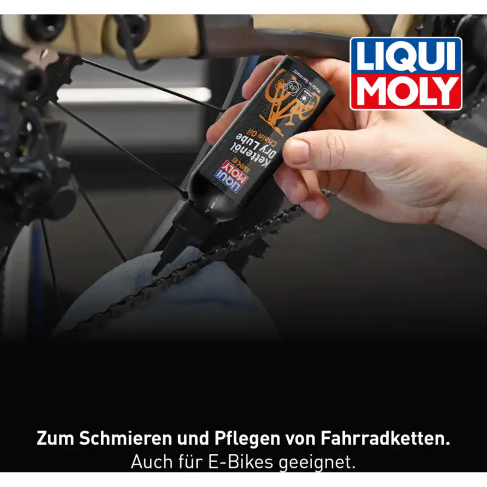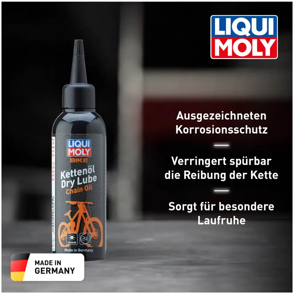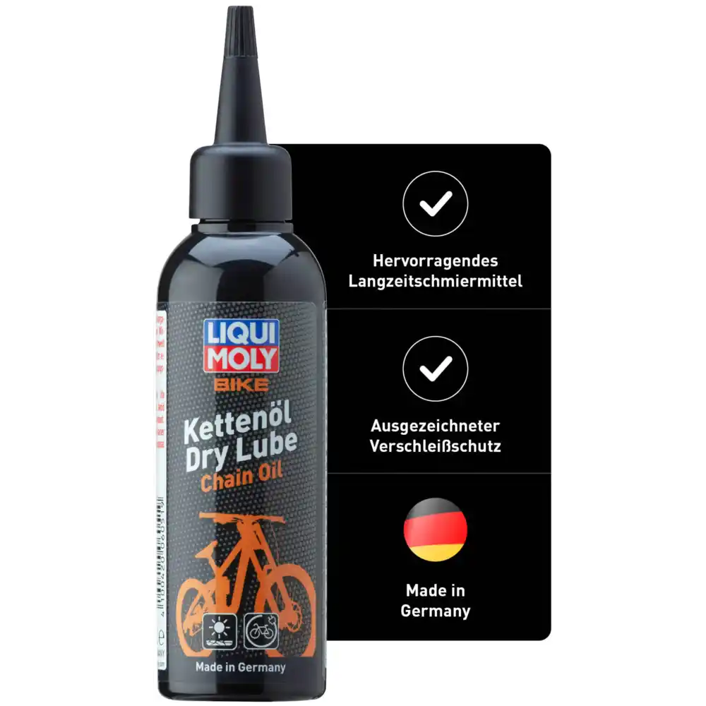 LIQUI MOLY Bike Kettenöl Dry Lube 100 ml ist ein spezialisiertes Langzeitschmiermittel für Fahrradketten, das insbesondere bei trockenen und staubigen Bedingungen optimale Leistung bietet. Die hochwertige Formel sorgt für hervorragende Kriech- und Haftwirkung, reduziert Reibung spürbar und ermöglicht eine besonders ruhige Laufleistung der Kette. Gleichzeitig schützt das Kettenöl zuverlässig vor Verschleiß und Korrosion und trägt so zur Verlängerung der Lebensdauer der Fahrradkette bei.